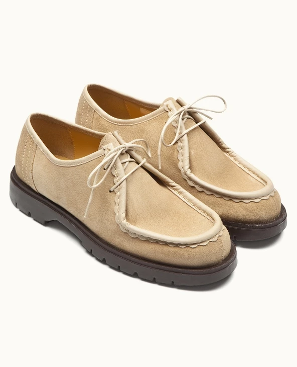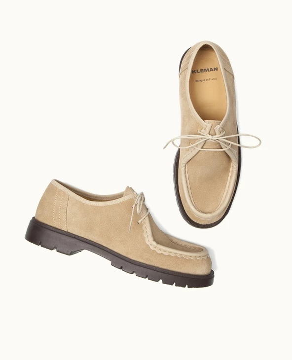 Chaussures made in France | Derbies semelle crantée cuir velours beige